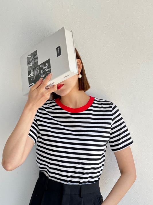 COULEUR クルーネックボーダーカットソーBLACK×RED(LADIES SIZE)