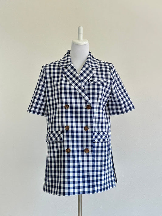 SOLD OUTEMY ギンガムチェック半袖ジャケットNAVY
