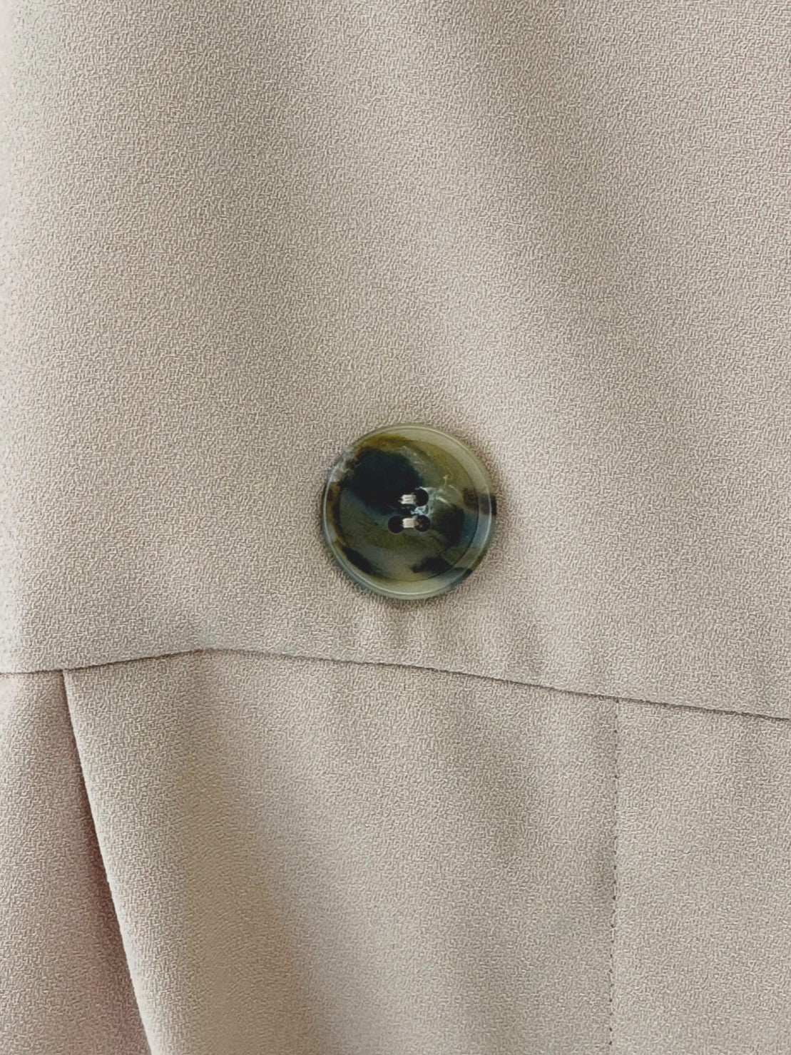 ゆとりのあるサイズ感なので、気になる二の腕、腰回りやお尻もカバーしつつ、ボタン位置を高めにつける事で脚長効果とスタイルアップ効果があります。
