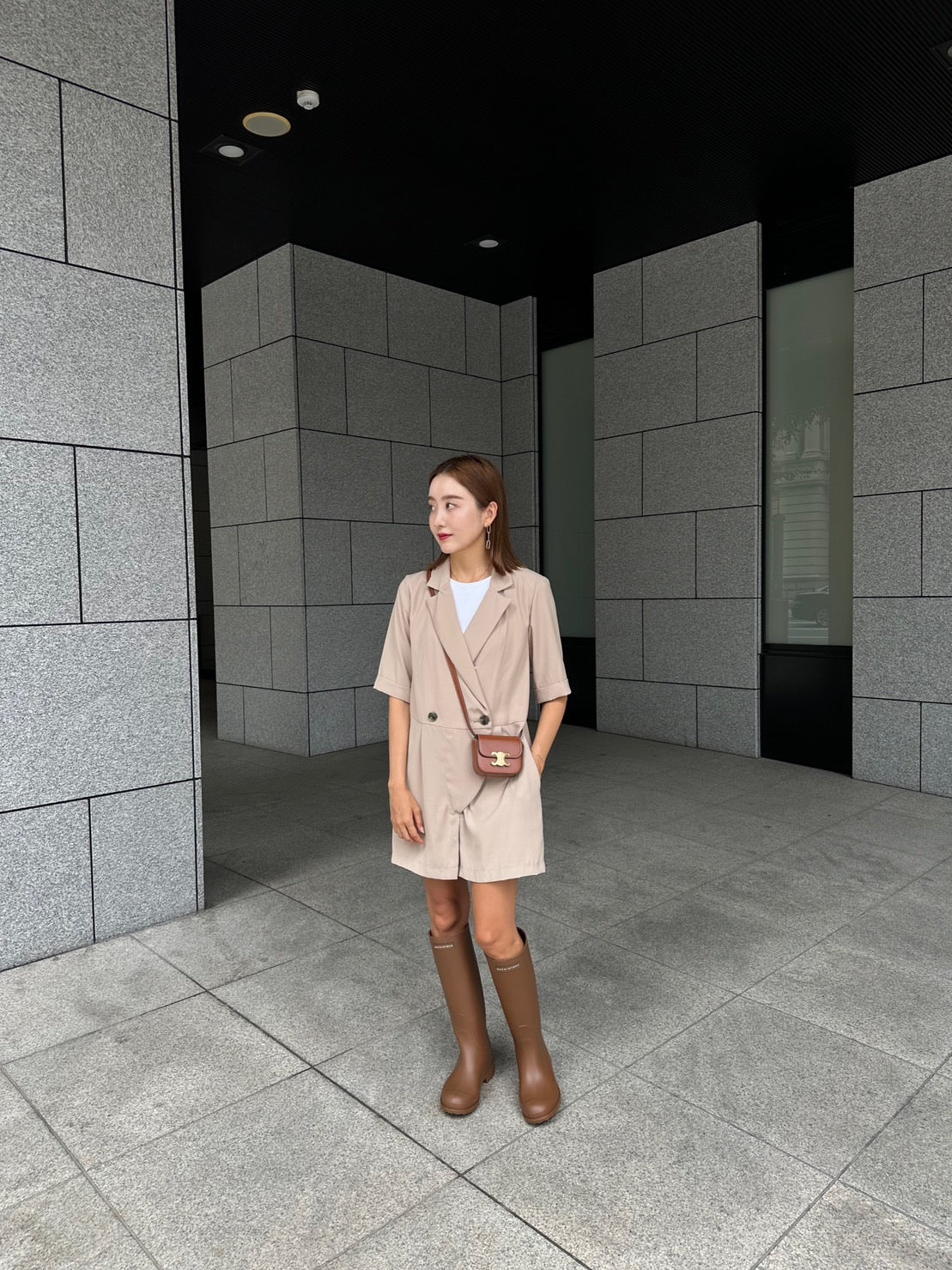 ロンパースでよくあるウエストのベルトや、切り替えを一切無くし、ストンと落ち感のあるシルエットに仕上げました。
