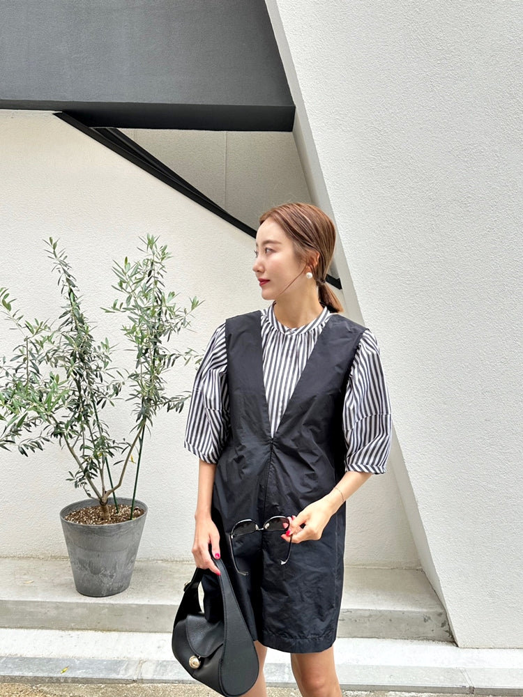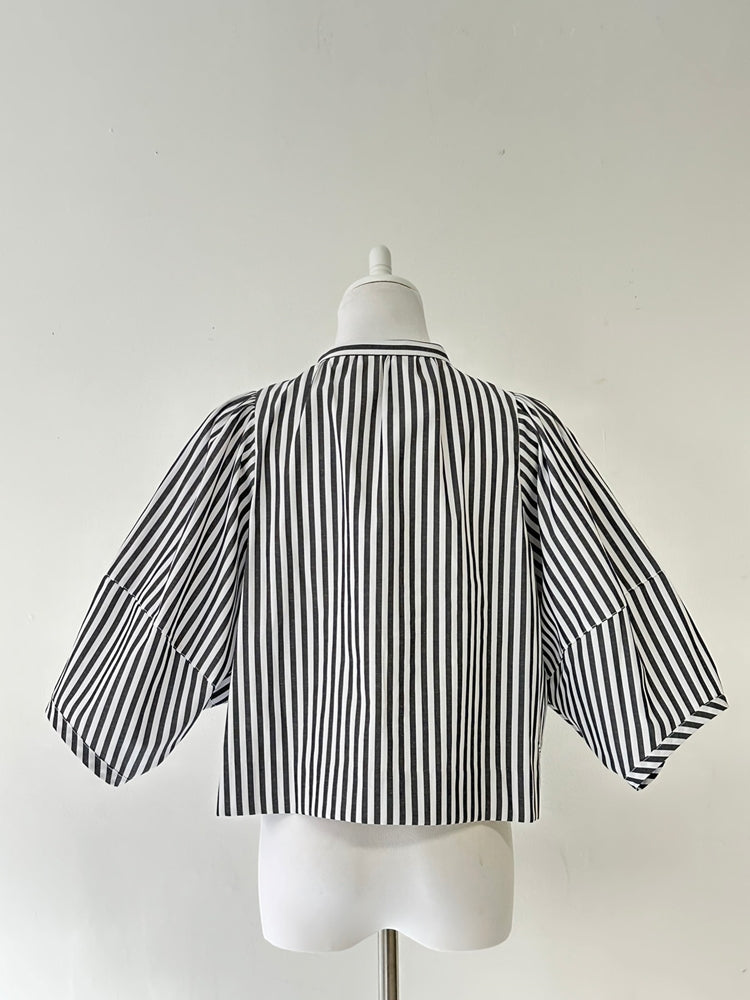 CAMILLE パフスリーブストライプシャツ GRAY