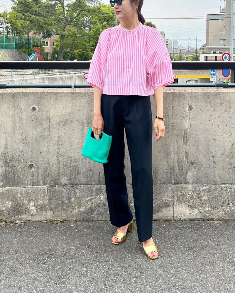 袖を長めにし、丈を短くすることでパフスリーブでも甘い印象になり過ぎないようなバランスでつくりました。