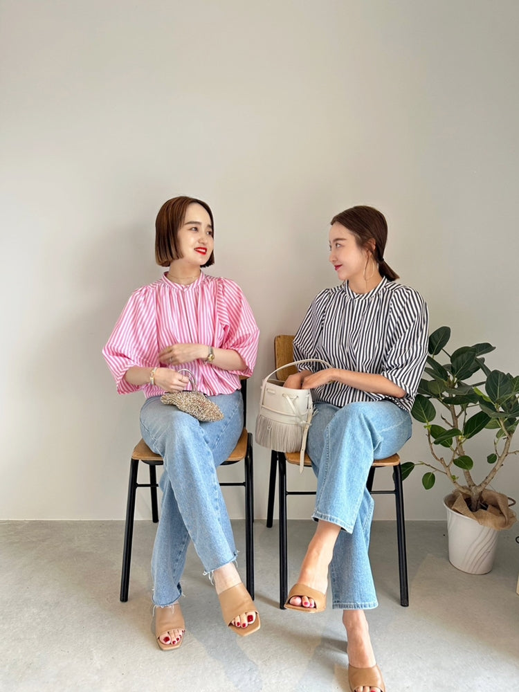 パフスリーブストライプシャツ CAMILLE「カミーユ」