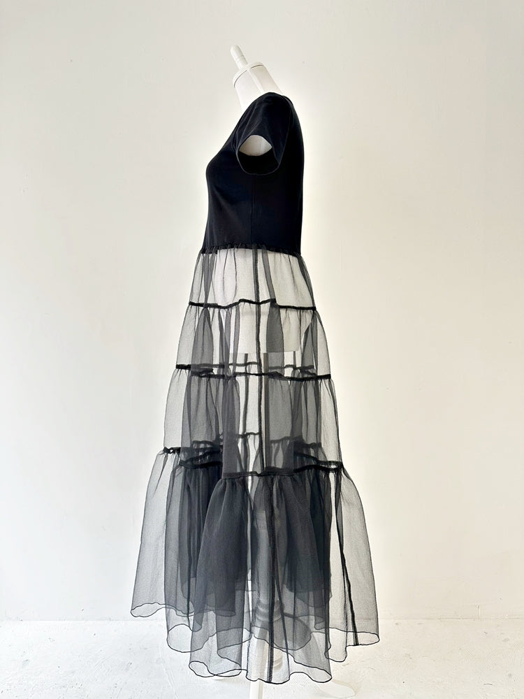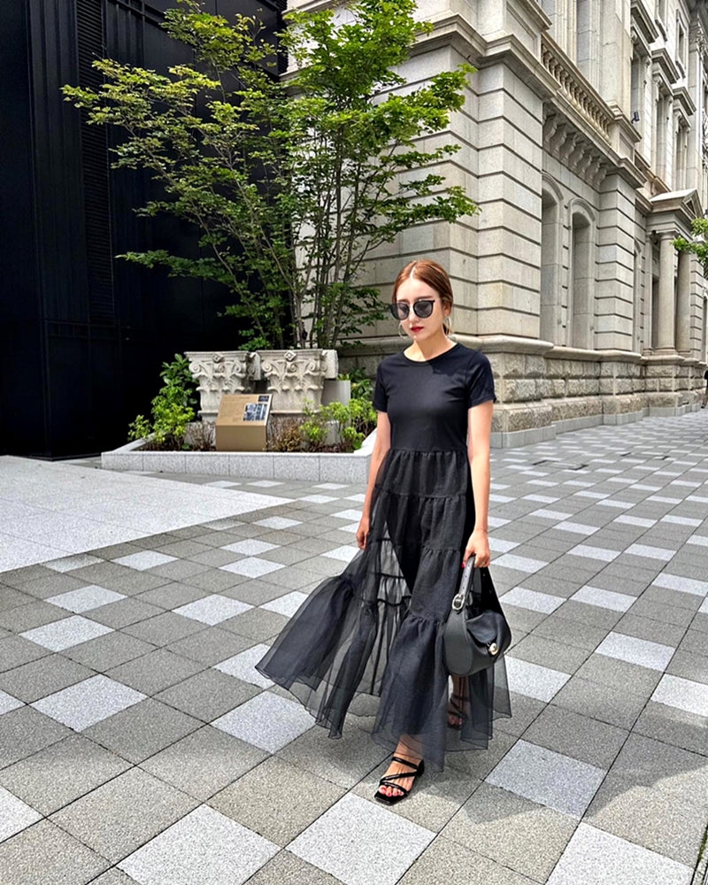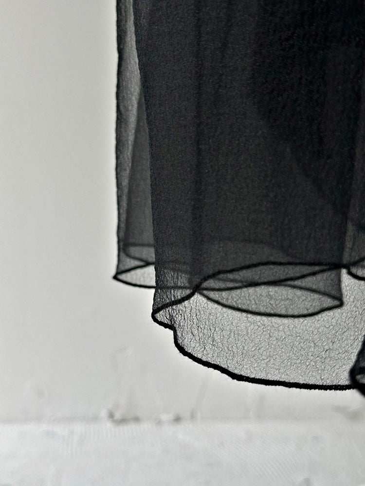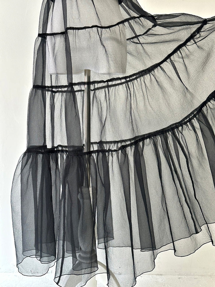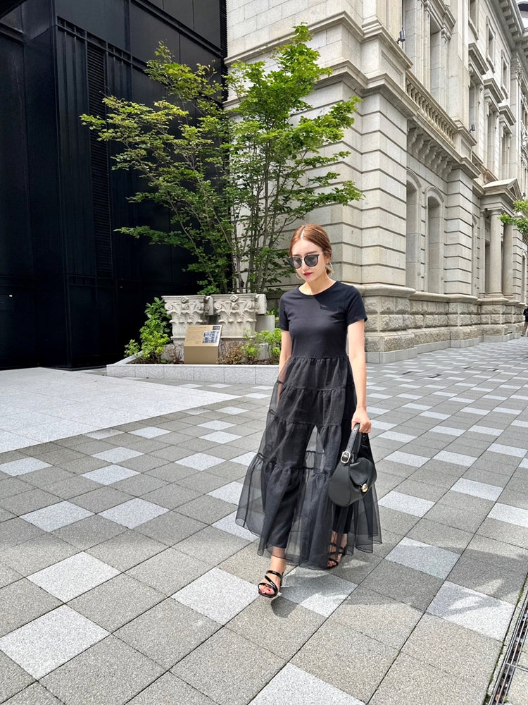 チュール部分に裏地がありませんのでショートパンツ、パンツ、スカートなどお好きなコーディネートで透け感を楽しんでいただけます。