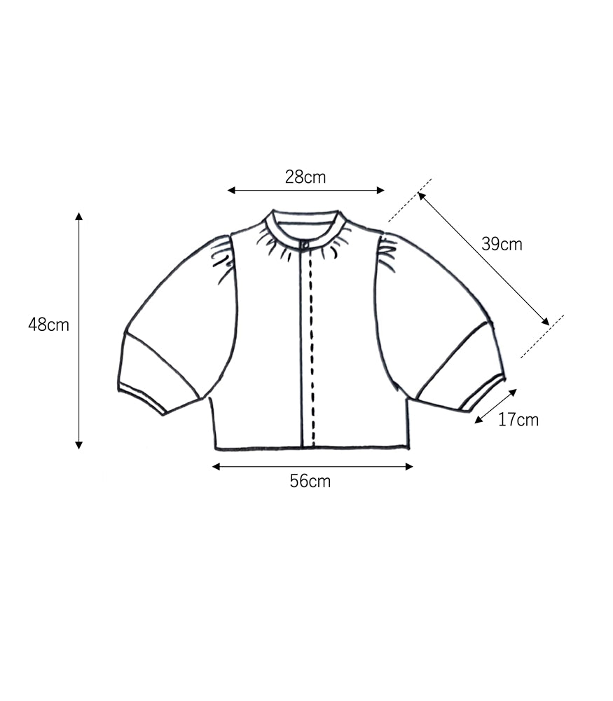 袖を長めにし、丈を短くすることでパフスリーブでも甘い印象になり過ぎないようなバランスでつくりました。