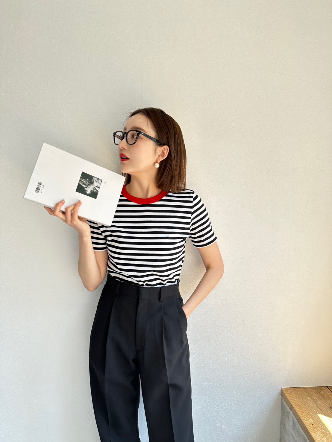 もちろん1枚で着ても印象的なデザインなので、普段ボーダーをあまり着ない方にも身に着けやすいアイテムです。