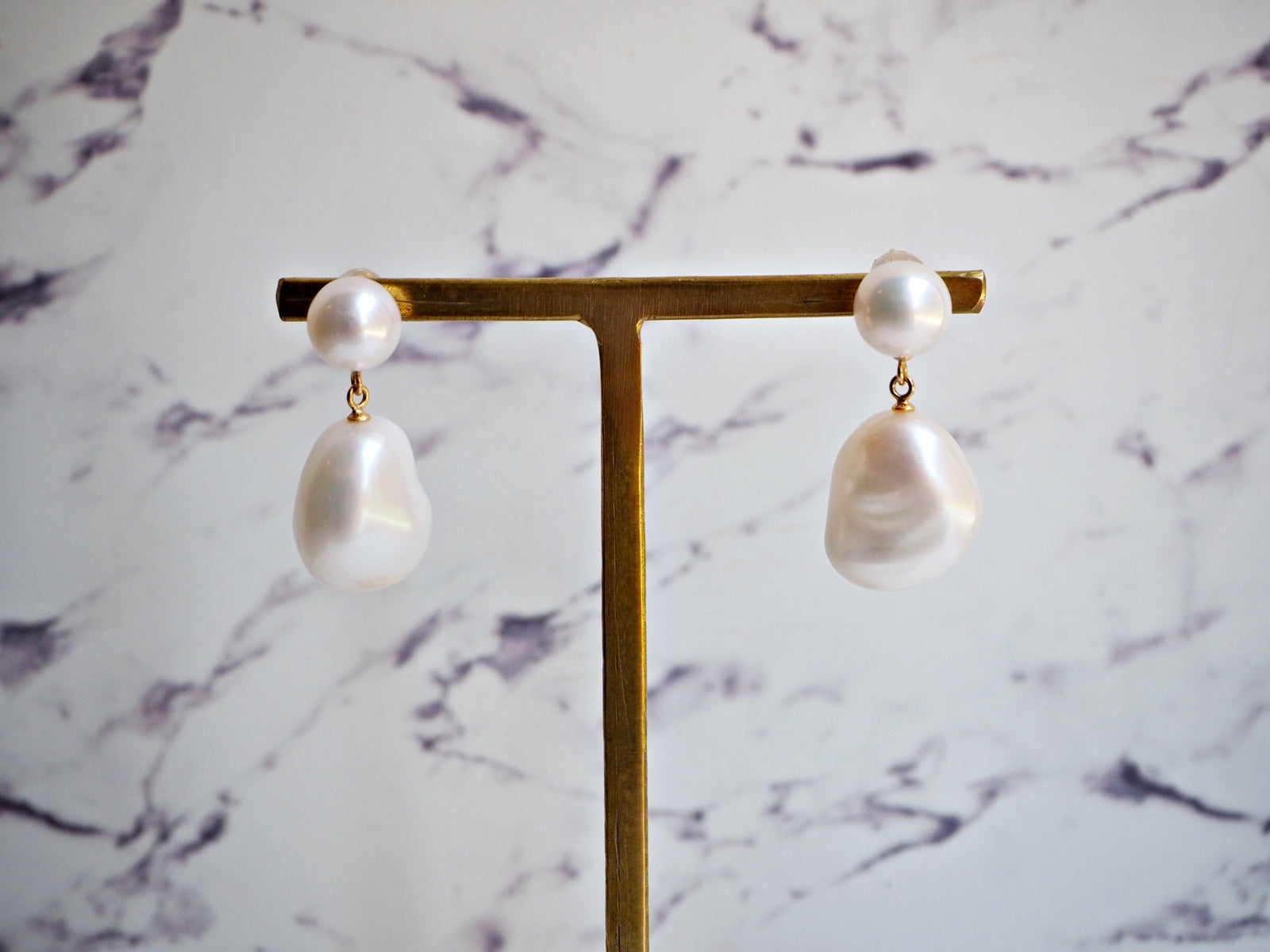 下部はバロックパールの中でも敢えて角の少ない綺麗目のパールを使用しており、主張し過ぎずカジュアルにもなり過ぎないのでコーディネートの幅が広がります。