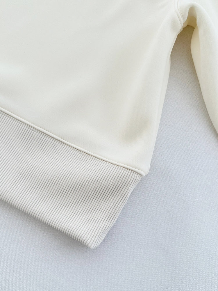 スウェットセットアップでも光沢のあるボンディング素材で作ることにより、シティでも着れるカジュアル過ぎない雰囲気に仕上げました。