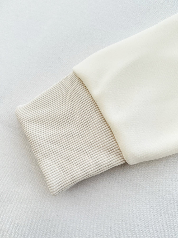 スウェットセットアップでも光沢のあるボンディング素材で作ることにより、シティでも着れるカジュアル過ぎない雰囲気に仕上げました。