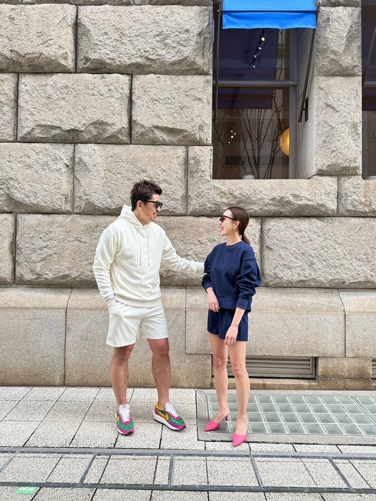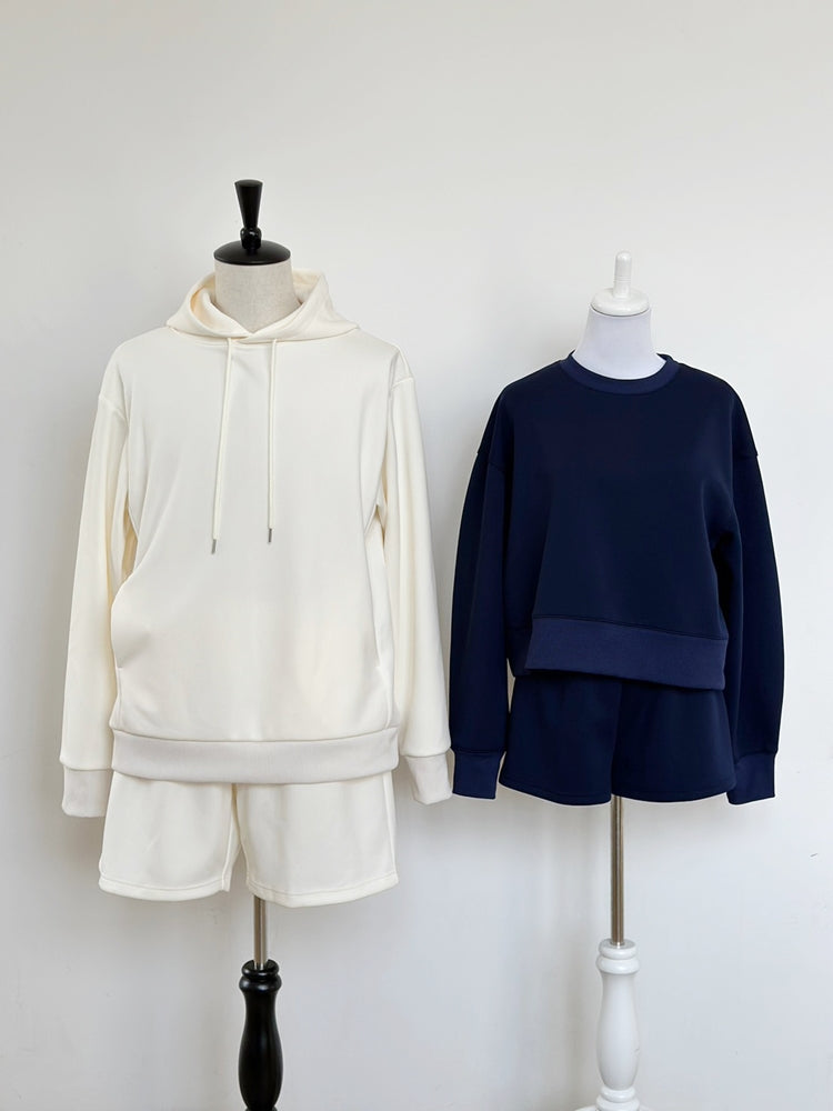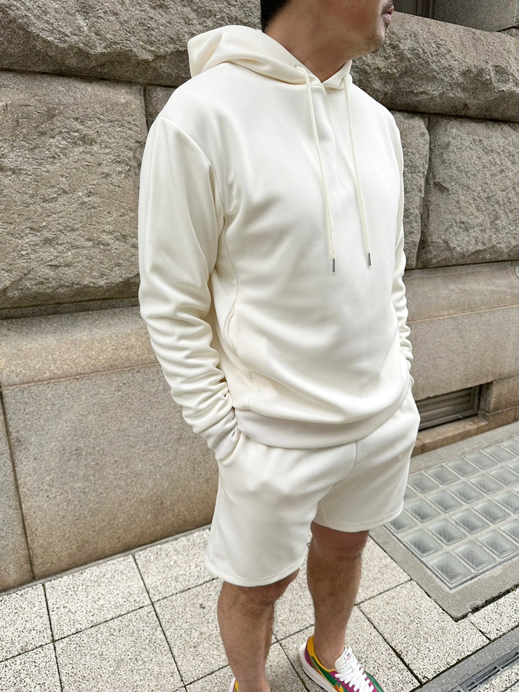 同時に販売するレディースと同じ素材、同じセットアップでもショートパンツの丈感や、フードありなしにする事により完全なペアルックにならず、ご夫婦やカップルで一緒に着ていただいてもおしゃれに仕上がります。