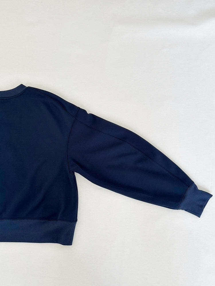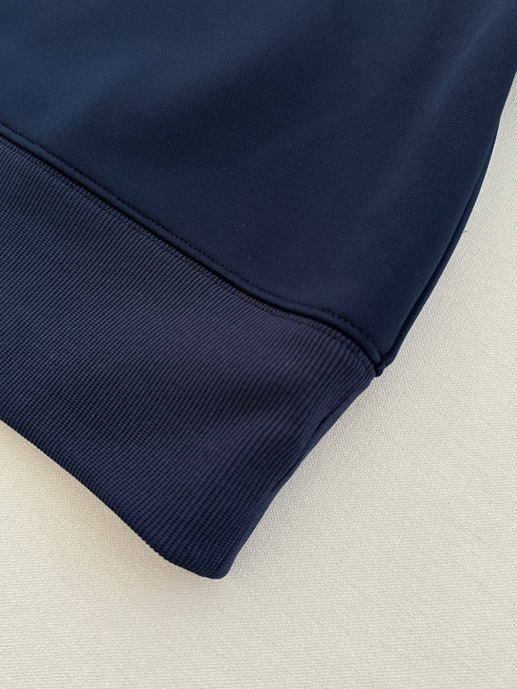 スウェットセットアップでも光沢のあるボンディング素材で作ることにより、シティでも着れるカジュアル過ぎない雰囲気に仕上げました。