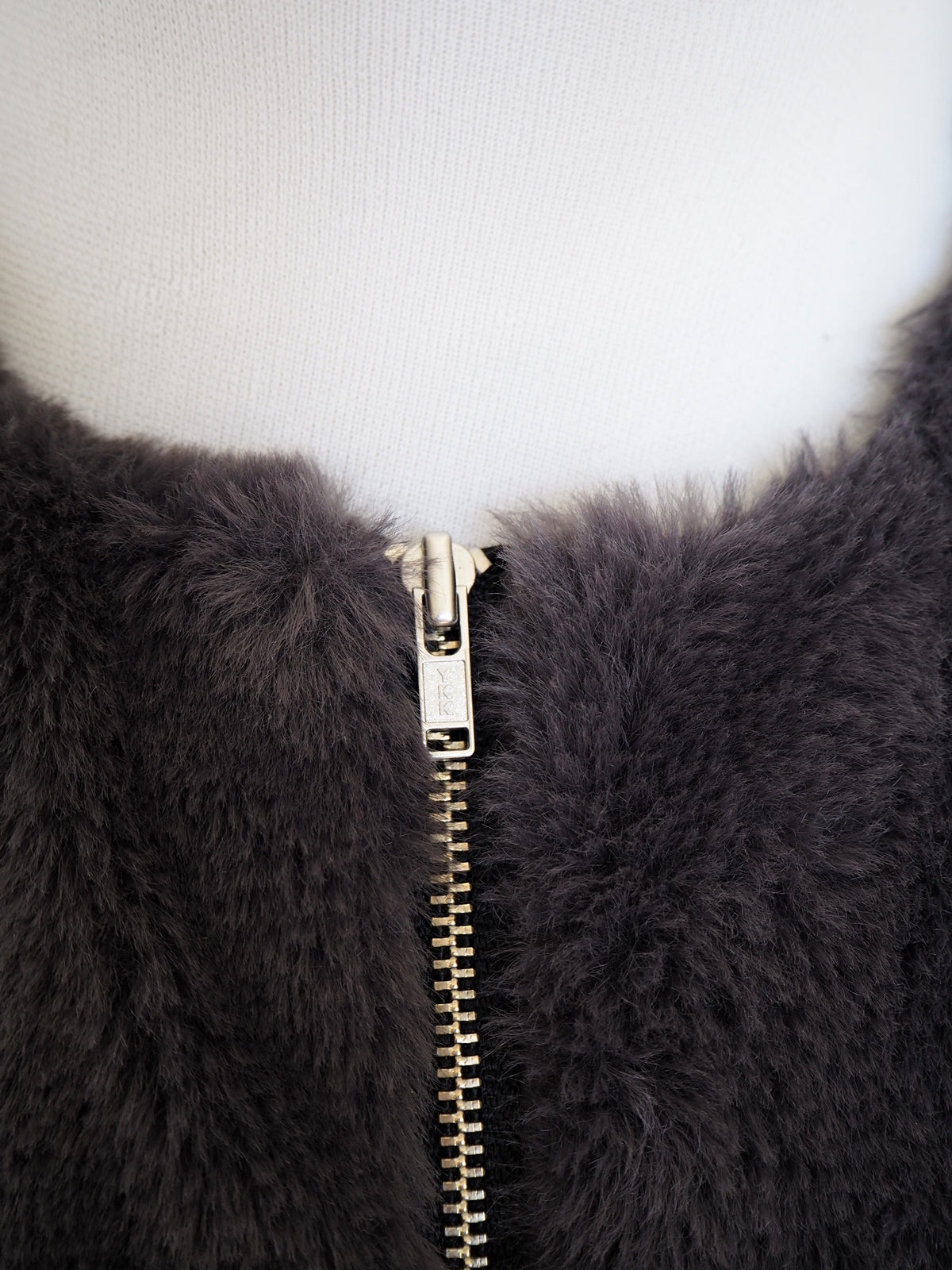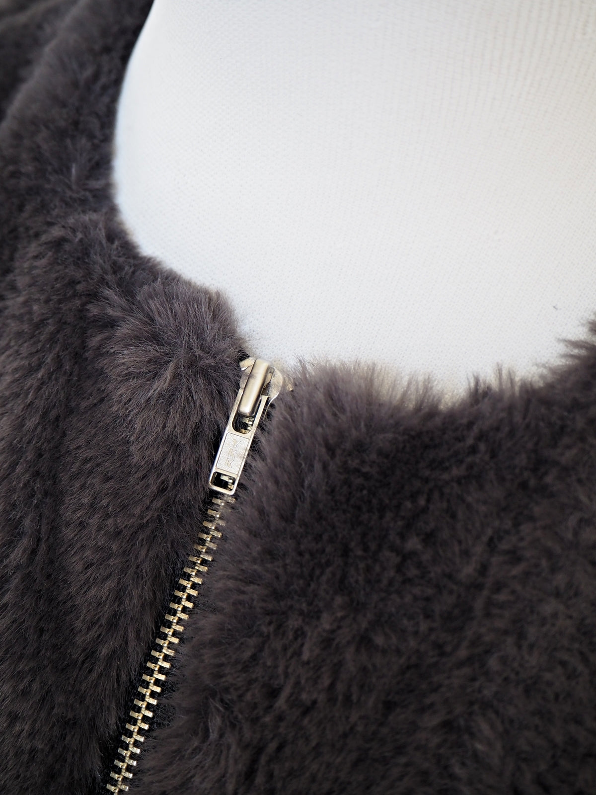 ベストとしてだけでなくトップスのような着回しができるようフロント部分はボタンではなくあえてチャックにしました。