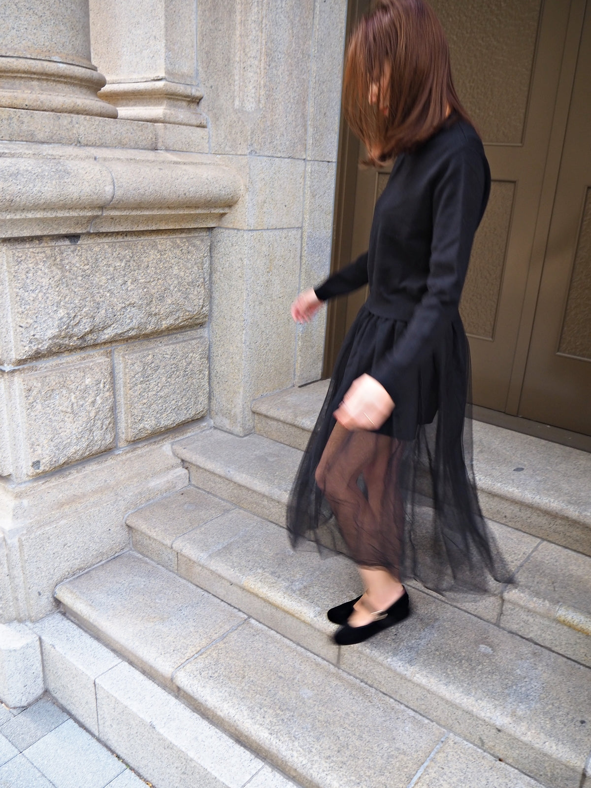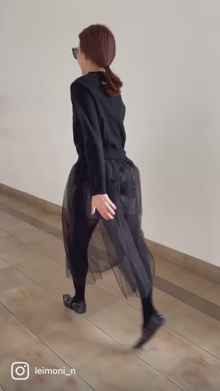 冬はタイツやロングブーツ、春は素足やショートパンツなどと合わせて透け感を楽しんでいただけます。
