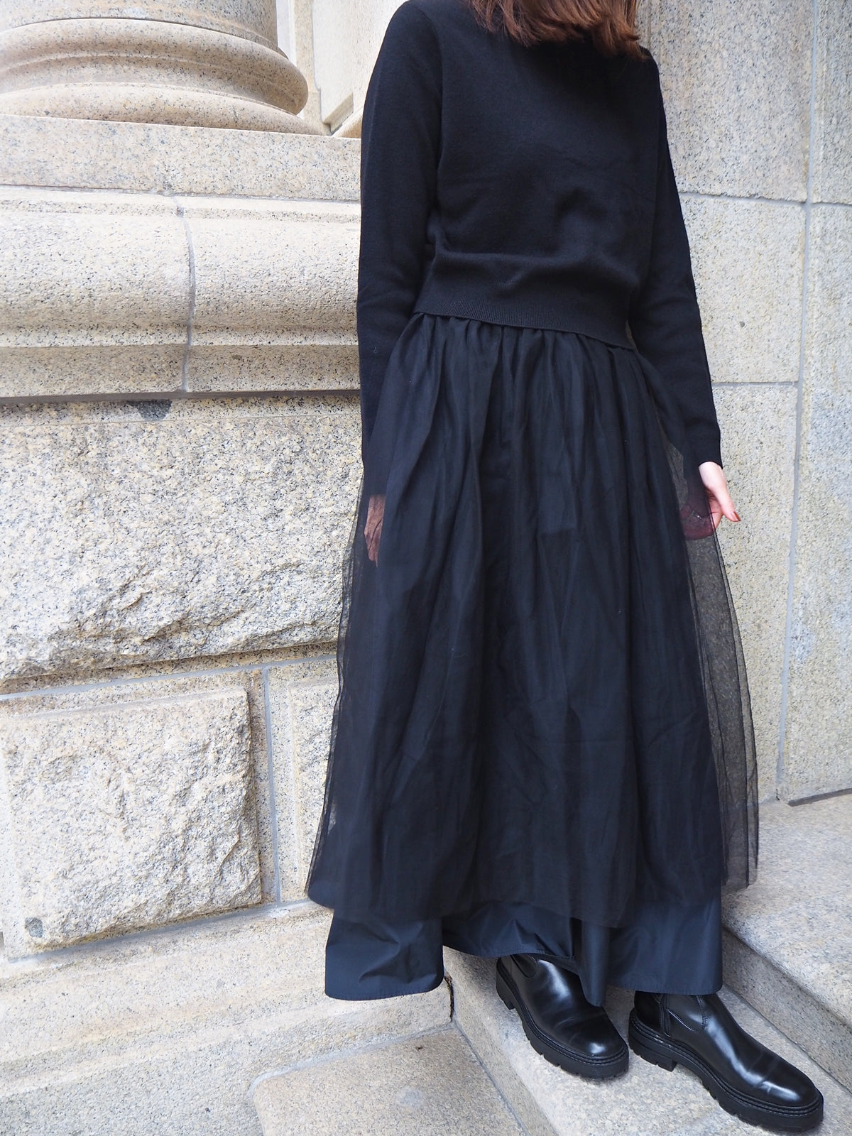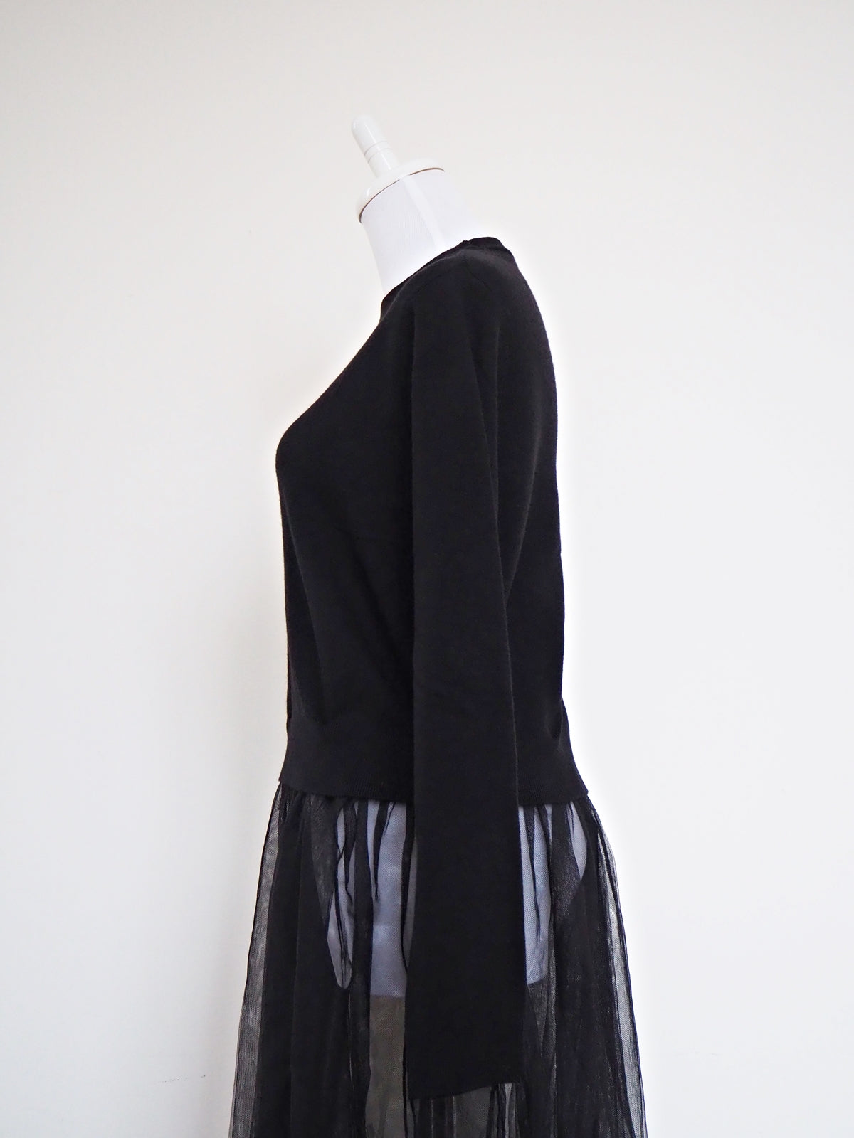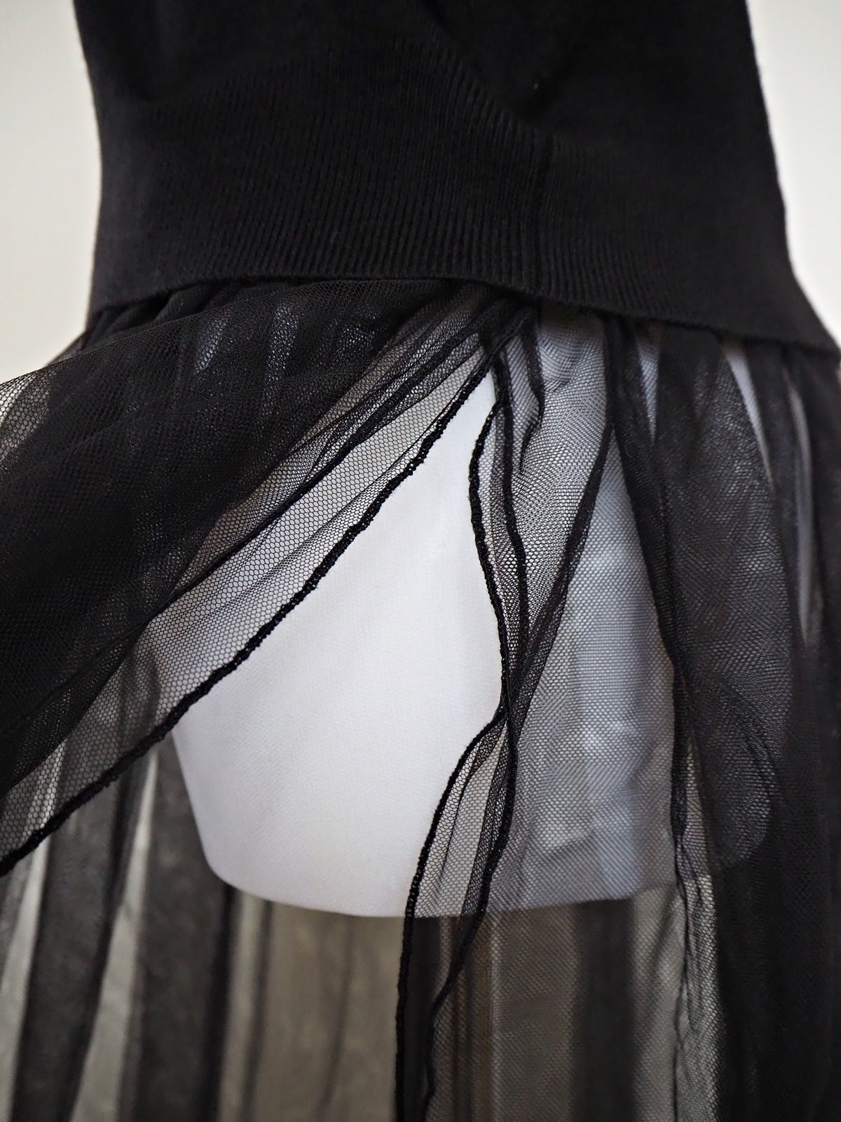 チュール部分はボタンで取り外しが可能となっており、シンプルにニットとしてもご着用いただけます。