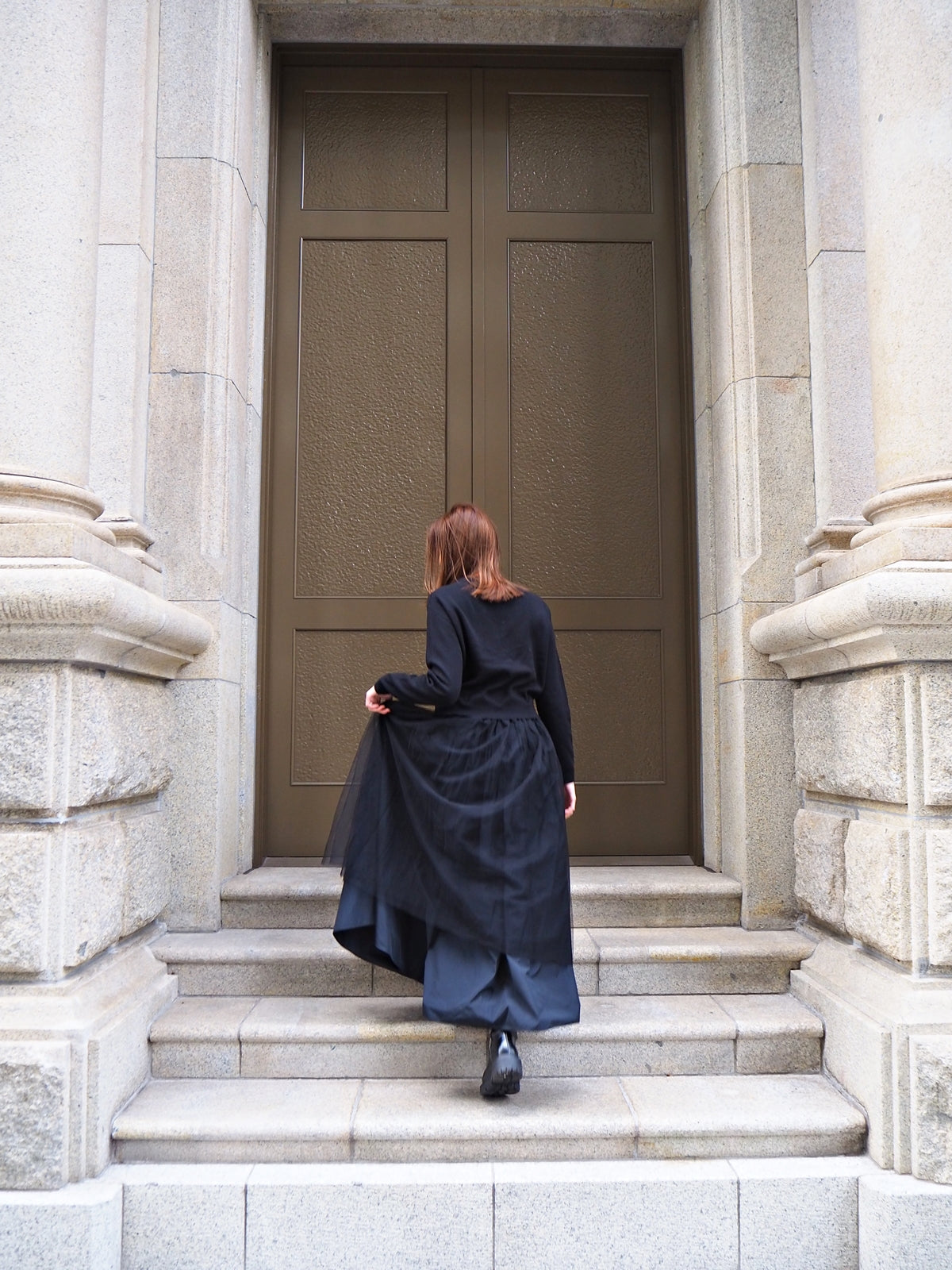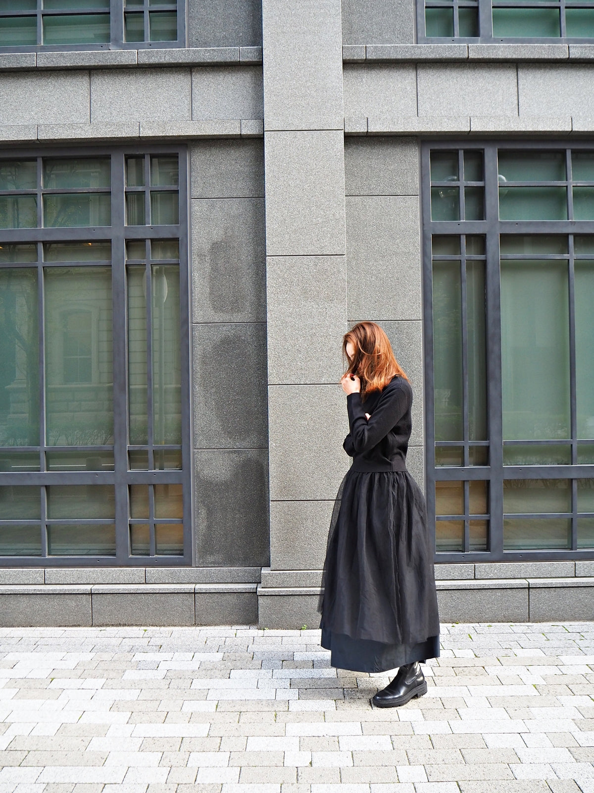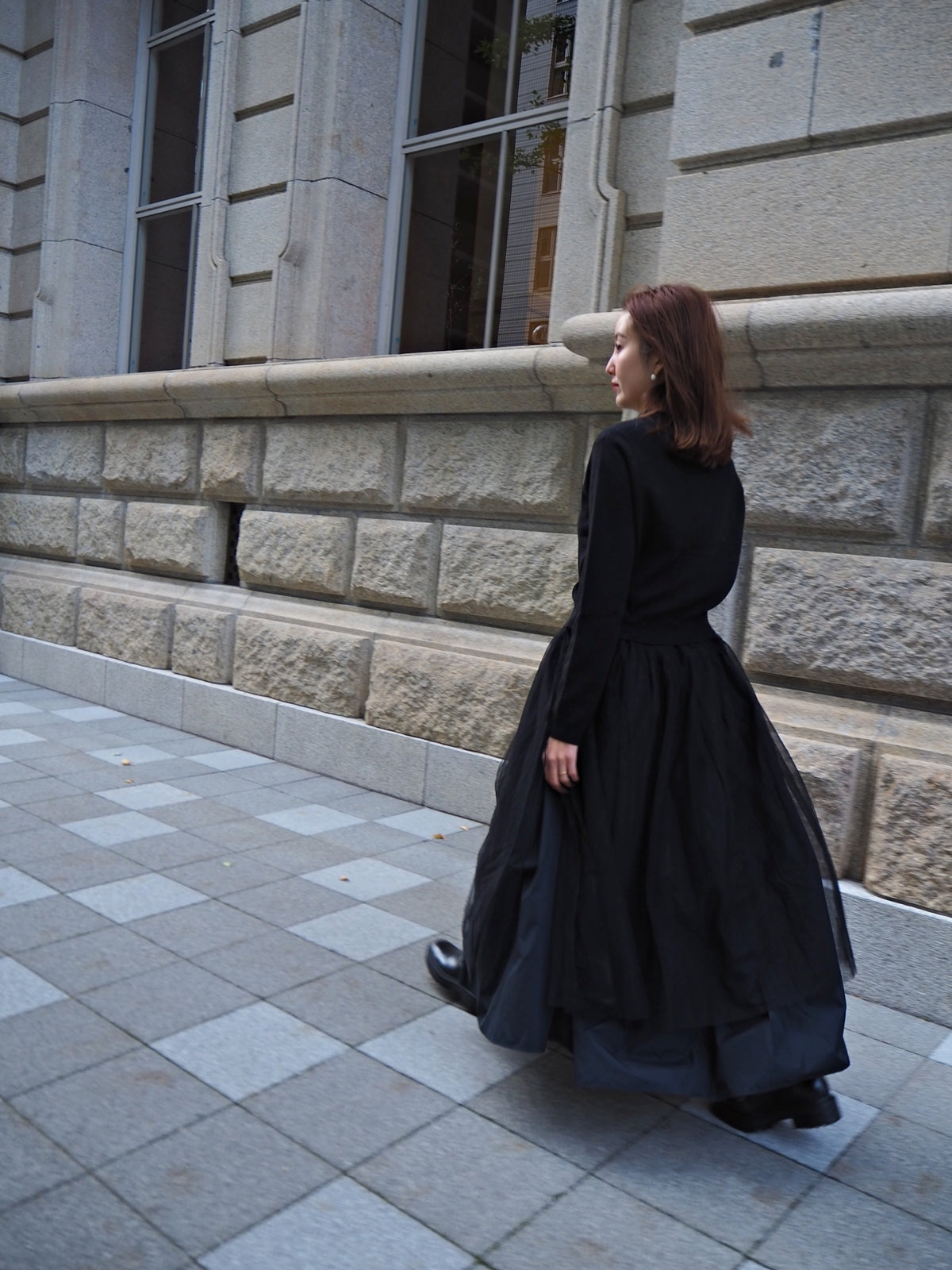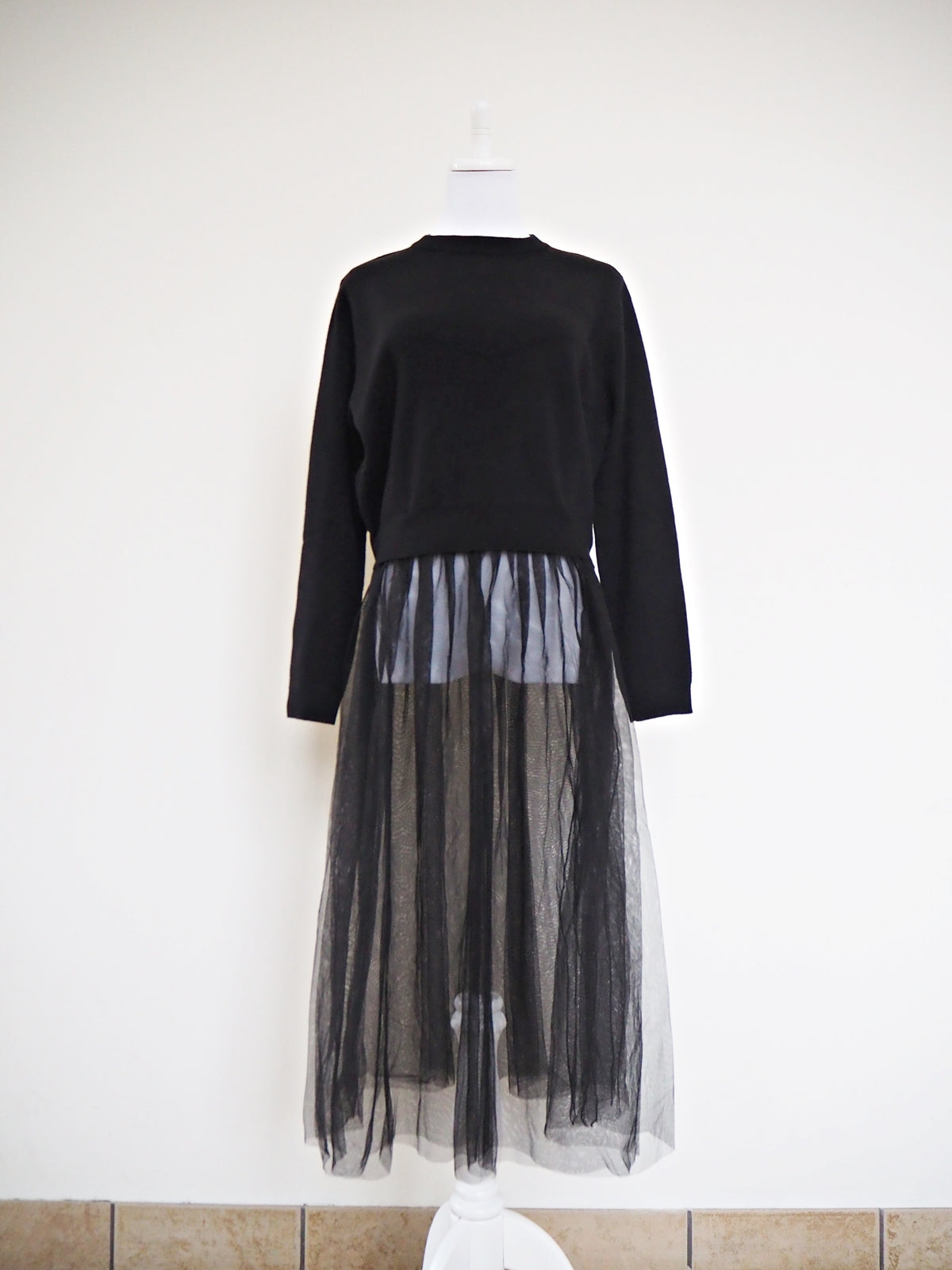 チュール部分はボタンで取り外しが可能となっており、シンプルにニットとしてもご着用いただけます。